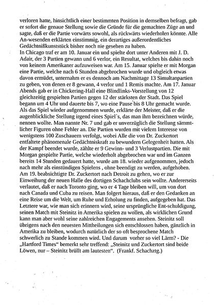 Wir kommen nun zu demjenigen Abschnitte unseres Kongressbuches, der uns die meiste Mühe verursacht hat und doch nicht so vollkommen ausgefallen ist, wie wir es gewünscht hatten, nämlich zu dem Adressen-Verzeichnis der uns bekannt gewordenen Schachfreunde aus Deutschland, Holland und Oesterreich-Ungarn. Die ………….